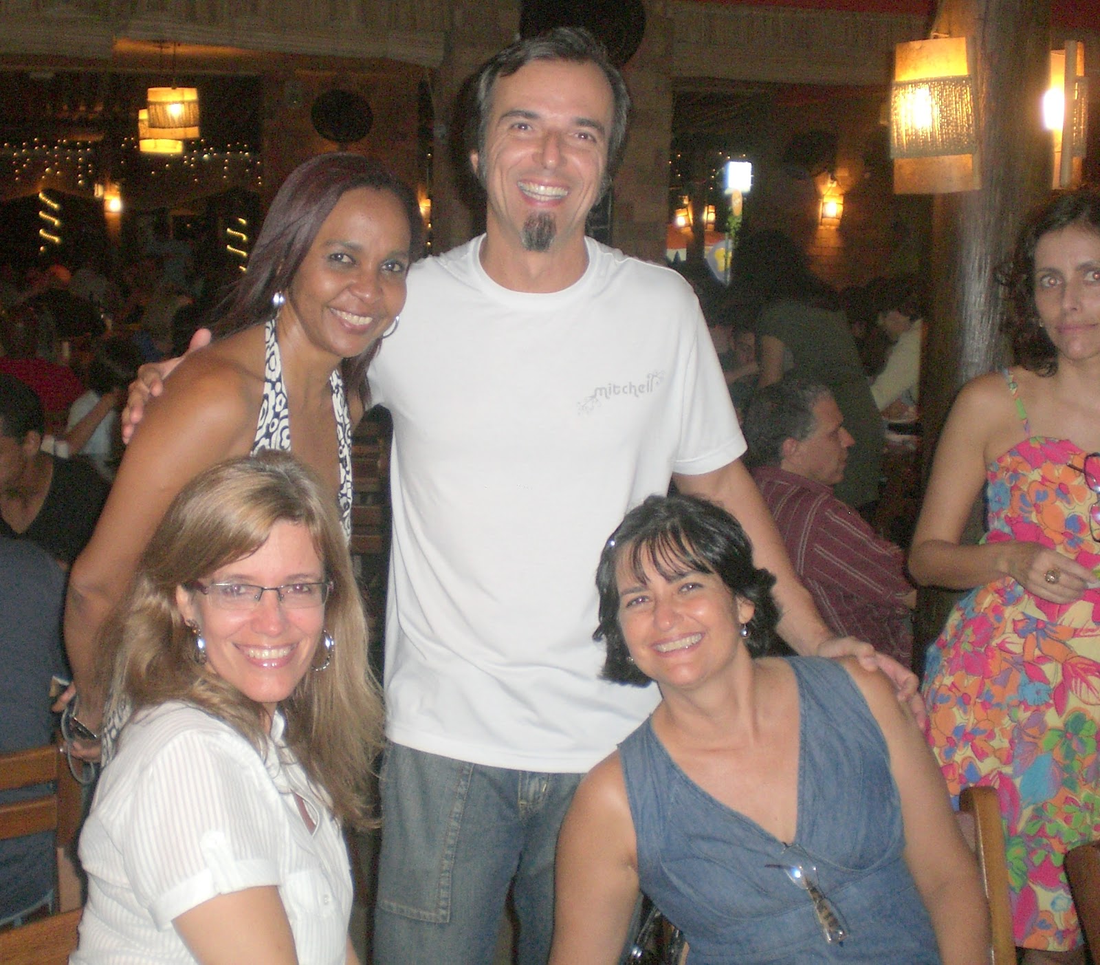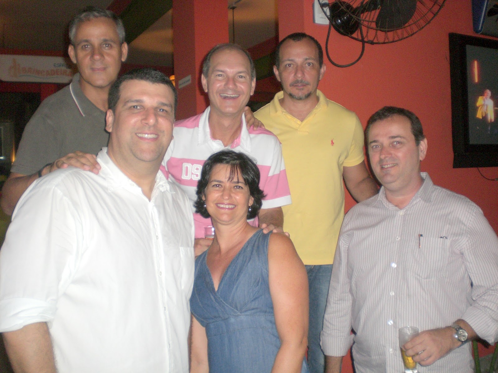 | Kitty, Giovana, Antonia, Karina, Kátia e Silvana,(embaixo) Adolfo, Jussara, Mazzoni, Edgar e João (no alto) no encontro de colegas do Maristas |
