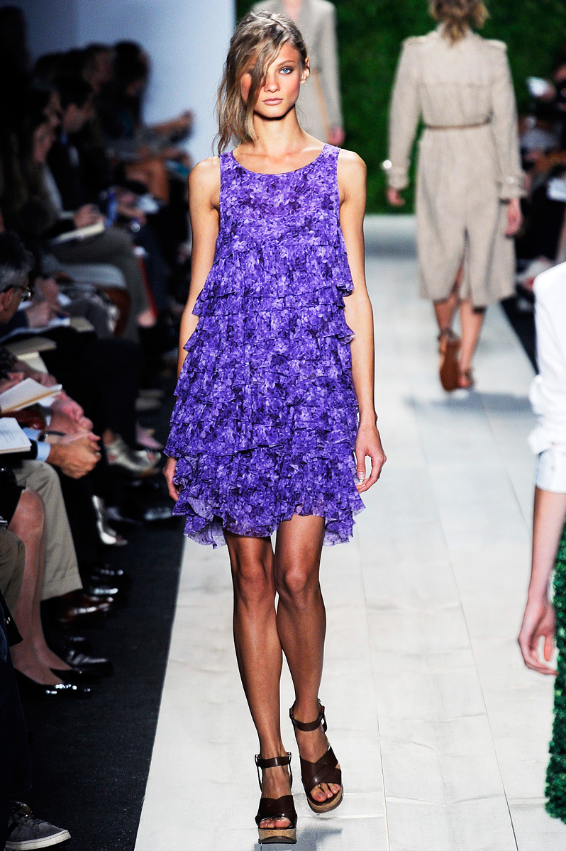 Vestidões, saias e mini-vestidos, nas cores quentes ou em tons nude, em tecidos leves, tecnológicos, e também nas malhas frias, invadem a passarela na coleção Primavera Verão de Michael Kors.